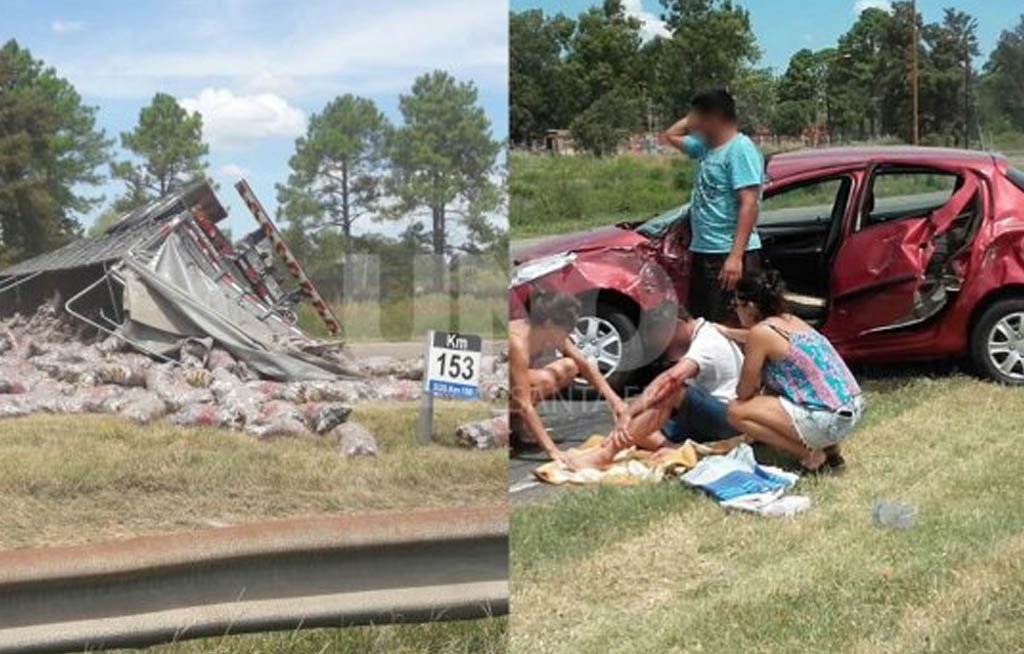 El domingo cerca de las 13 volcó un camión cargado con papas en la autopista Santa Fe – Rosario, fue luego de chocar contra un auto marca Peugeot en el kilómetro 153, mano que ingresa a la capital provincial, a la altura de La Tatenguita.