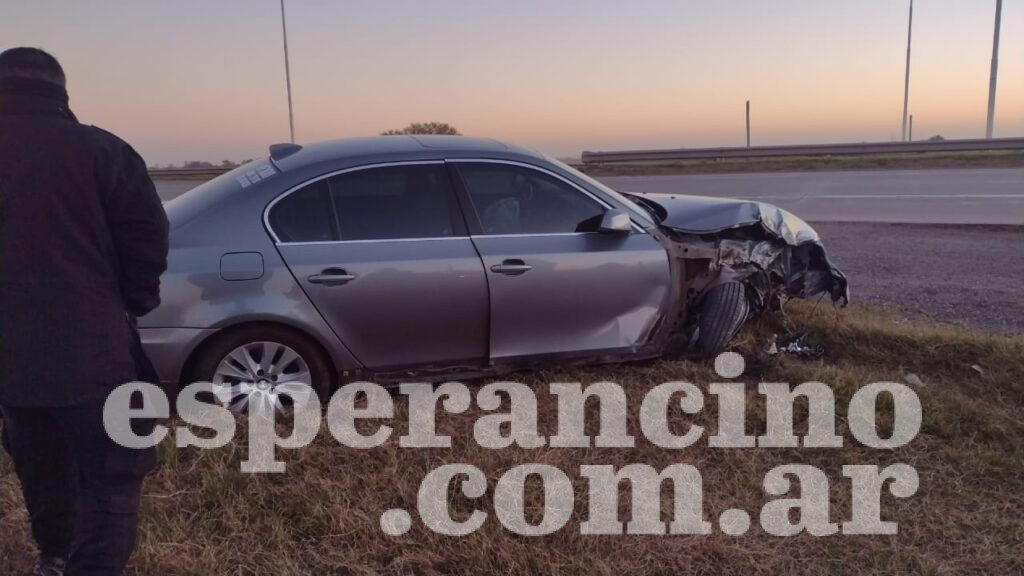 Un automóvil BMW despistó esta mañana en el cruce de Autovía 19 y ruta 10 y chocó contra el guardarrail.