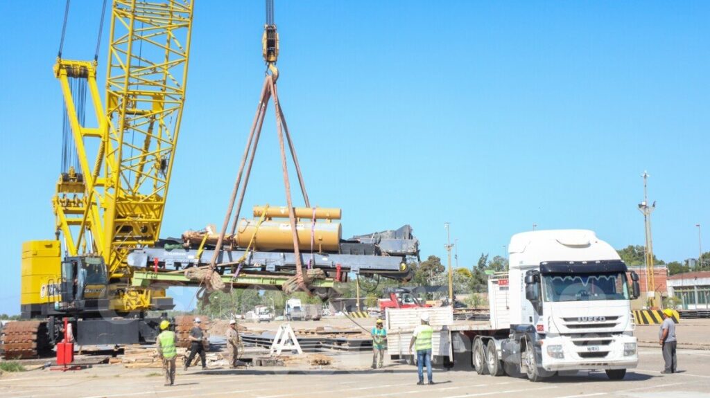 Inédita descarga de maquinaria vial en el Puerto de Santa Fe