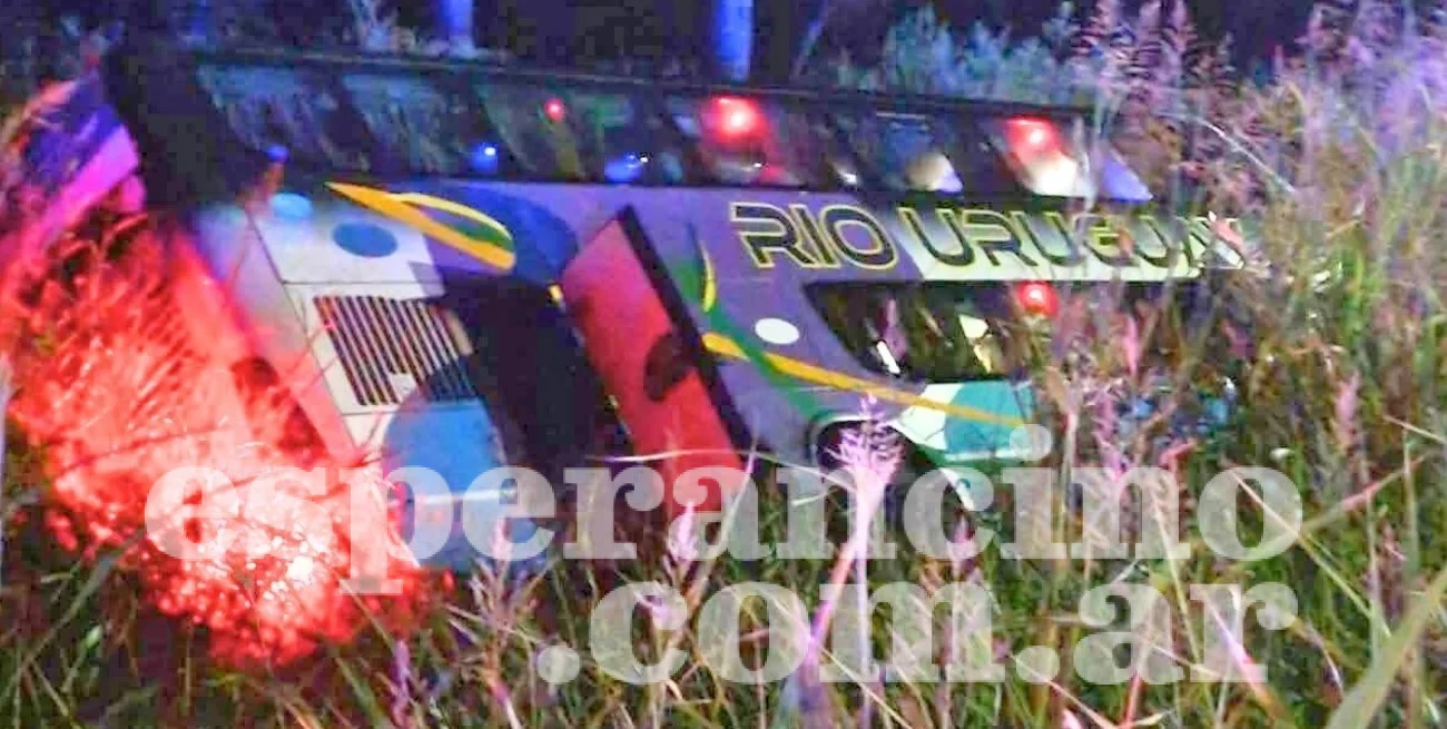 Datos preliminares dieron cuenta que en la madrugada del domingo un colectivo de la empresa Río Uruguay con 18 pasajeros a bordo colisionó con un auto en el cruce de las rutas 11 y 36, al norte de Vera, y terminó volcado sobre una de las banquinas. Había salido de Rosario a las 20 con destino al norte del país.