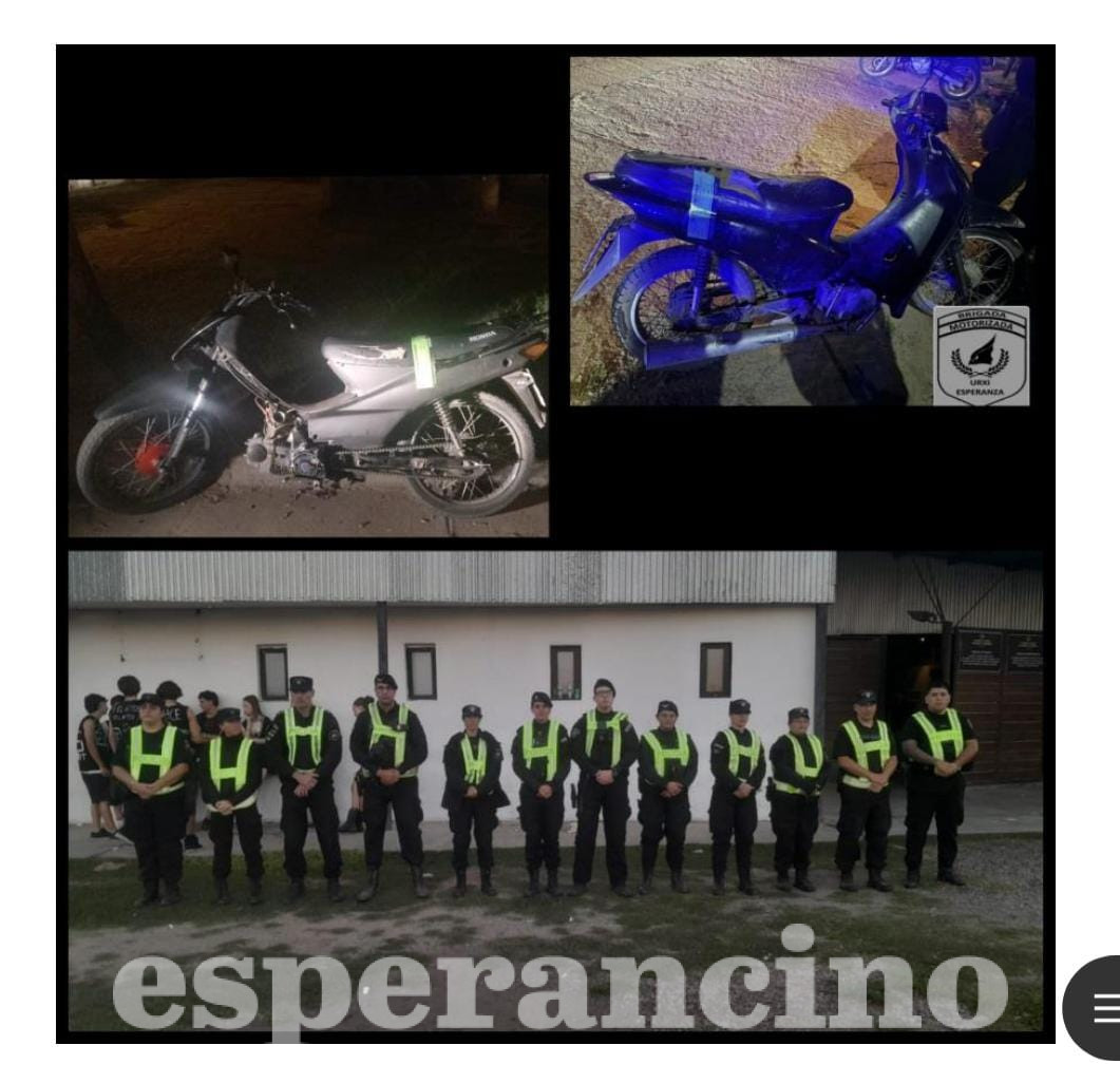 Asimismo agentes del Comando Radioeléctrico que patrullaban Esperanza en prevención de delitos y otras contravenciones retuvieron motovehiculos que no se encontraban en condiciones de circulación conforme a las normativas de tránsito. Dichos rodados fueron trasladados al Corralón Municipal hasta tanto los propietarios regularicen la situación.