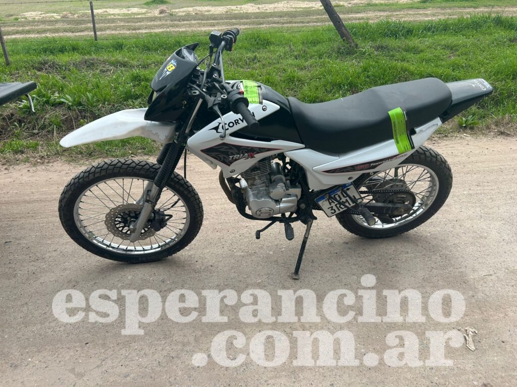 Al entrevistarse con su propietario, se logra establecer que no contaba con licencia de conducir ni seguro, por lo que se procede a remitir al corralón municipal de la ciudad de Esperanza.