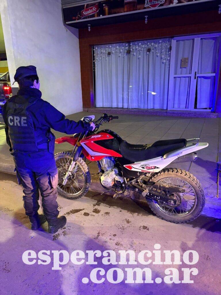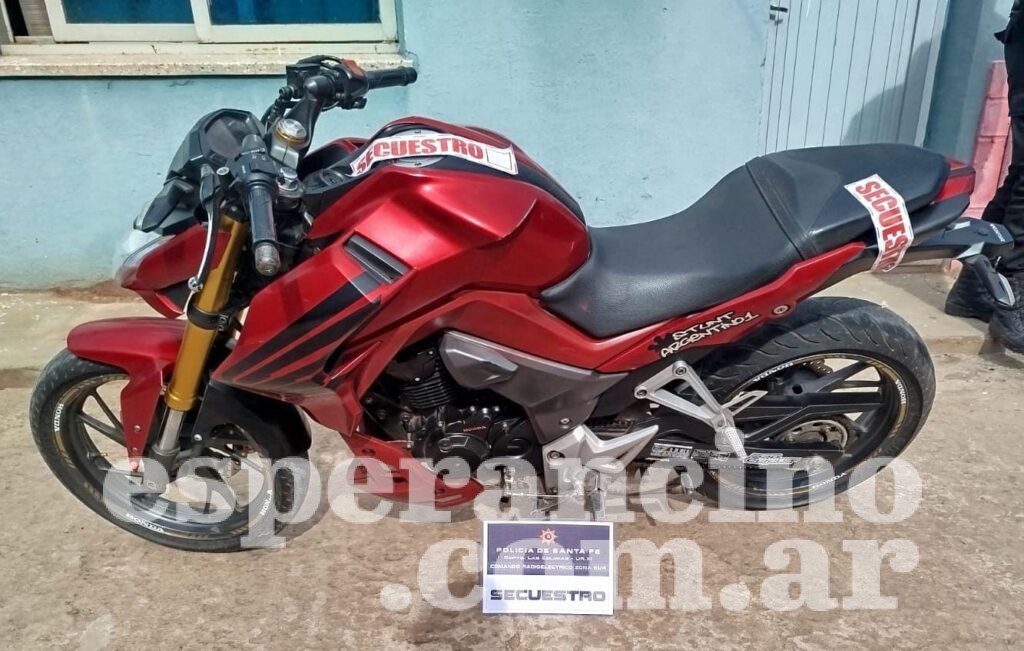 Tras solicitar documentación que habilite la utilización del rodado y consultar con la Central de Emergencias 911 si sobre esta pesaba algún requerimiento judicial se logró determinar que el motovehiculo contaba con un pedido de secuestro vigente desde el año 2024 por lo que se le dio conocimiento a la Fiscalía en turno y a su vez a la Seccional Primera de la Unidad Regional I, Santa Fe.