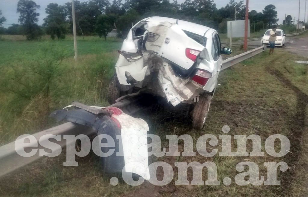 En la tarde del domingo, cerca de las 17, un Fiat Siena circulaba por ruta 70 hacia Santa Fe cuando en la zona de puentes, entre Esperanza y Recreo, por un charco de agua el santafesino que manejaba perdió el control del rodado, lo que derivó en que impacte contra una columna de luz y luego quede a pocos metros de un profundo canal.