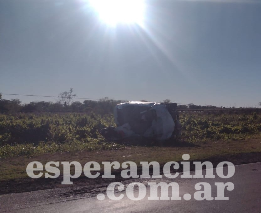 Un automóvil Toyota Corolla despistó y volcó en ruta nacional 11, en la curva de Iriondo, cerca del ex peaje de Nelson.