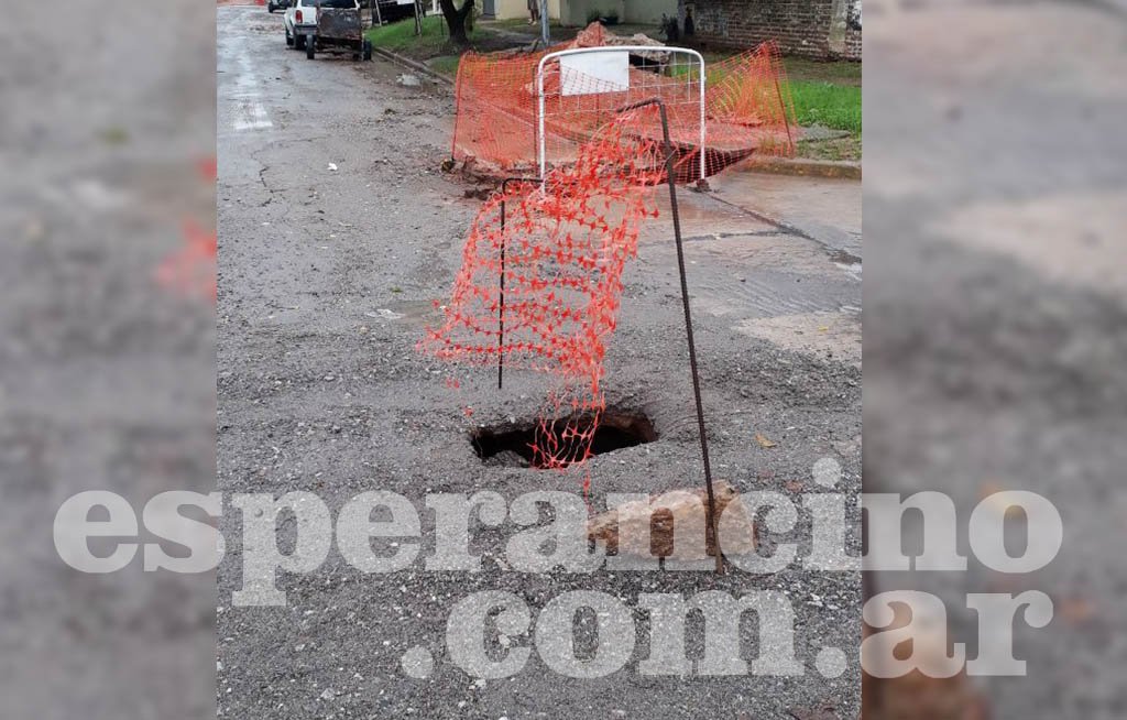 A esta altura está claro que cada vez que llueve la gente que vive sobre calle Alem y también en las adyacencias deberá extremar los cuidados porque la empresa esperancina Río Salado, a pesar de reiterados hechos similares, no hizo nada para evitar que se siga hundiendo el piso.