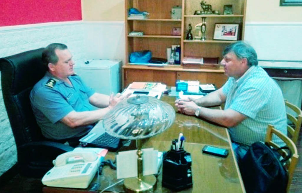 Continuando con las reuniones con presidentes comunales, el jefe de la Unidad Regional XI, director de policÃa Juan José Vouilloz, recibió al titular de Nuevo Torino, Juan Carlos Imsteyf, oportunidad en la que coordinaron acciones y analizaron temas de interés para los habitantes de esa población.