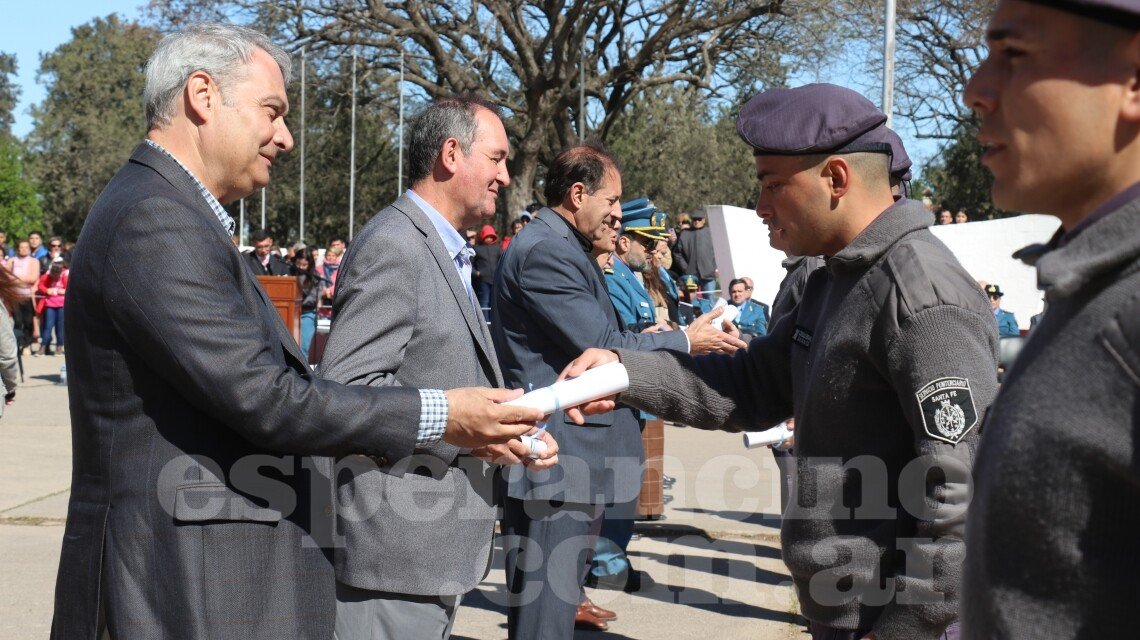 El acto de egreso se realizó en el Instituto de Seguridad Publica y contó con la presencia del secretario de Gestión Social e Institucional, Horacio Córdoba Ríos; la directora de Bienestar Policial, Luz Rondina; y el intendente de Recreo, Omar Colombo, entre otros.
