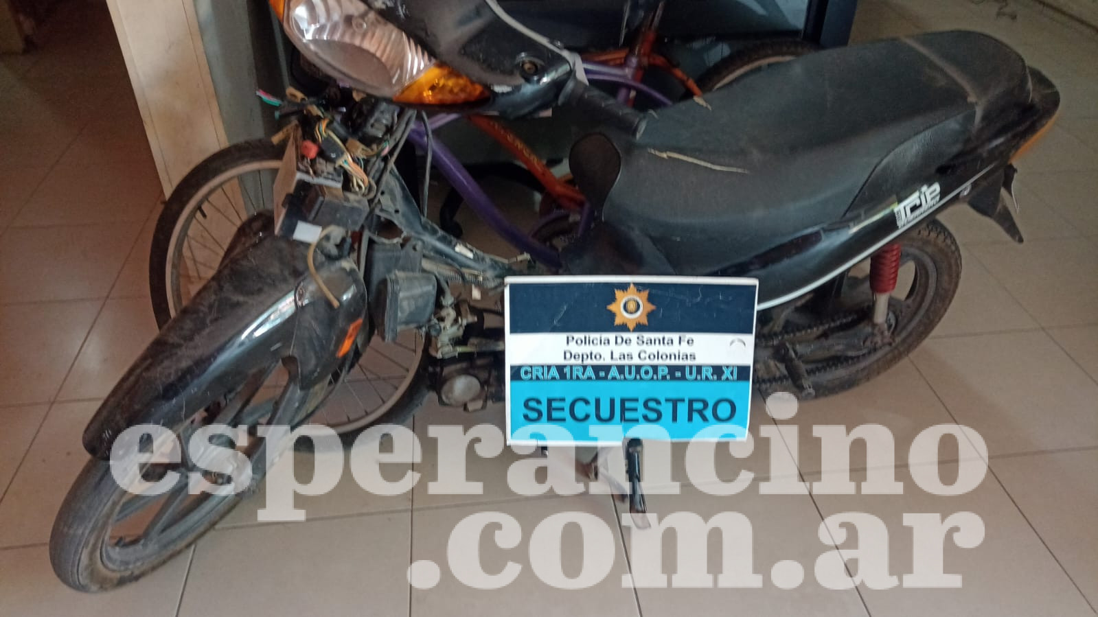La motocicleta sustraída el día jueves desde un domicilio en calle Lehmann al 1800 fue recuperada por efectivos policiales. Al menos dos sujetos, que ya fueron identificados, estarían involucrados en el hecho. Tras la denuncia de una vecina de Esperanza por la faltante de su motocicleta Guerrero Trip que se encontraba en la vereda del domicilio sin medidas de seguridad, funcionarios policiales de la Comisaría Primera de Esperanza realizaron tareas investigativas y de visualización de imágenes que les permitieron reconocer a los posibles involucrados.