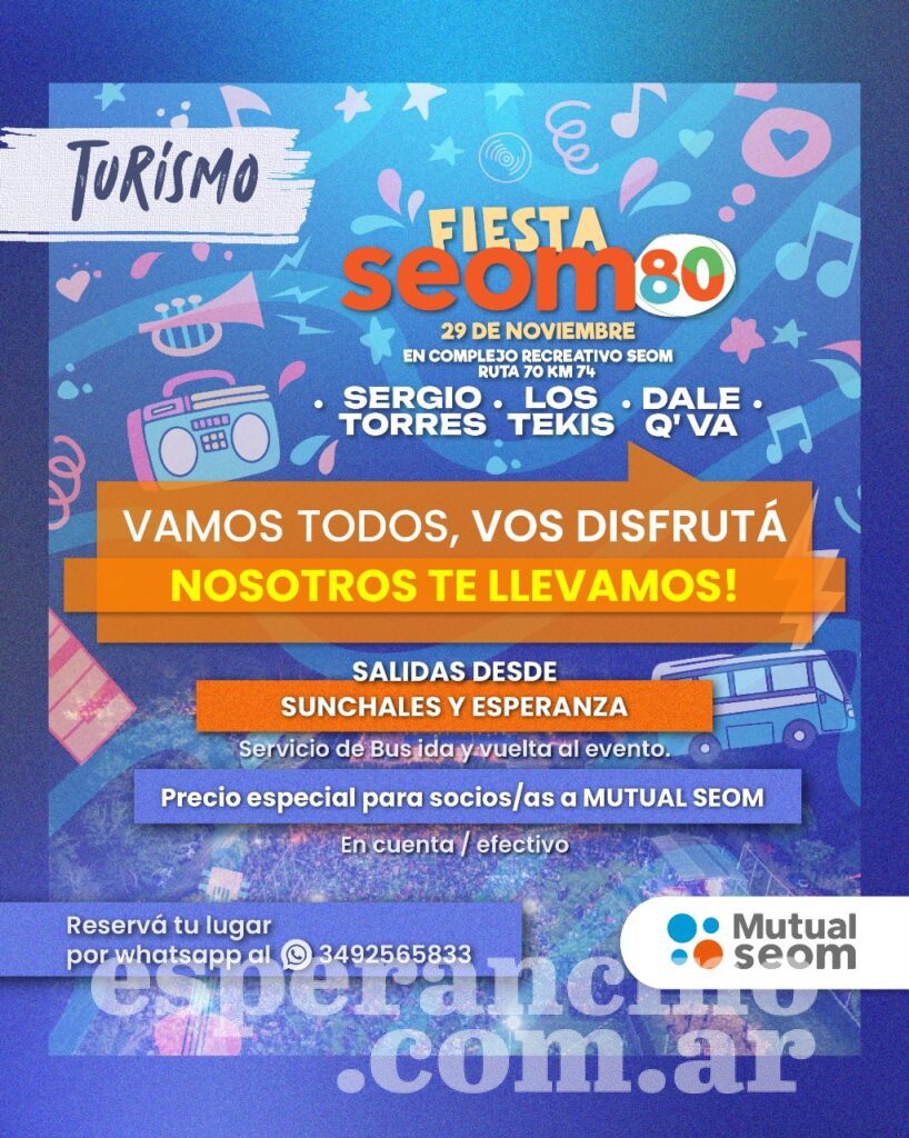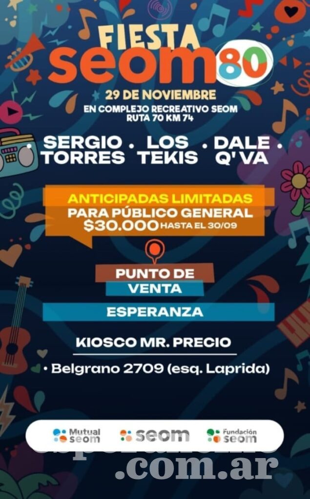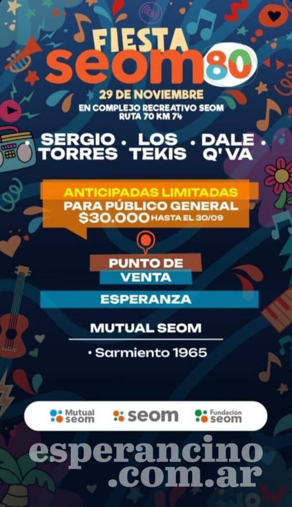 Además invitaron al festejo de los 80 años en Rafaela, que contará con la actuación de Los Tekis, Sergio Torres y el cuarteto cordobés Dale Q’ Va.