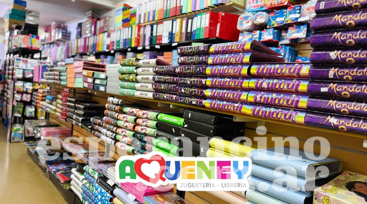 “Tenemos toda la línea Maped, Filgo, Éxito, Triunfante, Bic, una completísima variedad en carpetas, cientos de cartucheras muy prácticas y con onda, biblioratos de colores, mochilas y muchísimos productos más con ofertas inigualables”, dijeron desde Aqueney.