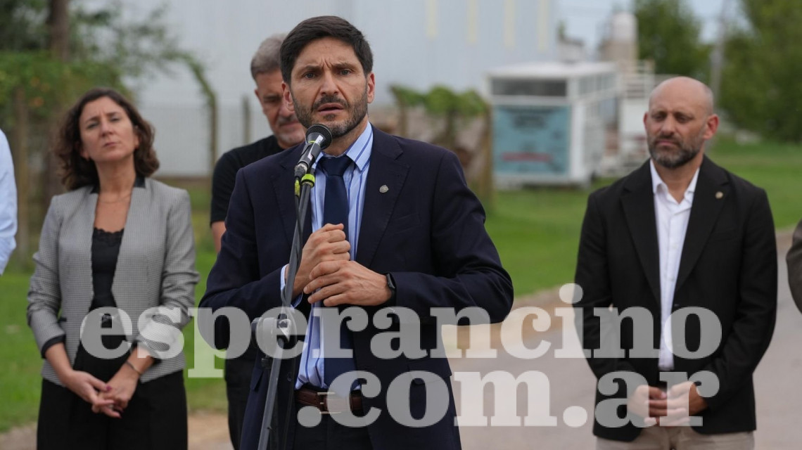 El gobernador encabezó este viernes la inauguración al acceso al Área Industrial de Firmat y sostuvo que “gracias al trabajo unificado podemos sentir que esta ciudad está avanzando. Hoy cortamos la cinta de una obra importante que fue financiada por el Ministerio de Desarrollo Productivo con la Municipalidad. En nuestro primer año de gestión bajamos el costo de la obra pública en un 40 % comparativamente en valores reales al 2023. Por eso pudimos hacer las obras que estamos haciendo”.