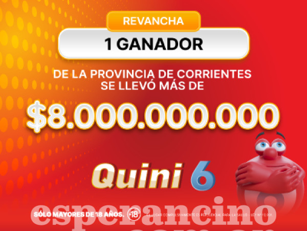 Lotería de Santa Fe informa que finalizando el sorteo de Quini 6, un apostador con seis aciertos de la localidad de Santa Lucía, provincia de Corrientes, se adjudicó el pozo total de la modalidad «Revancha» por más de $8.061.500.000. El feliz apostador acertó a los números 07-11-13-14-36-37.